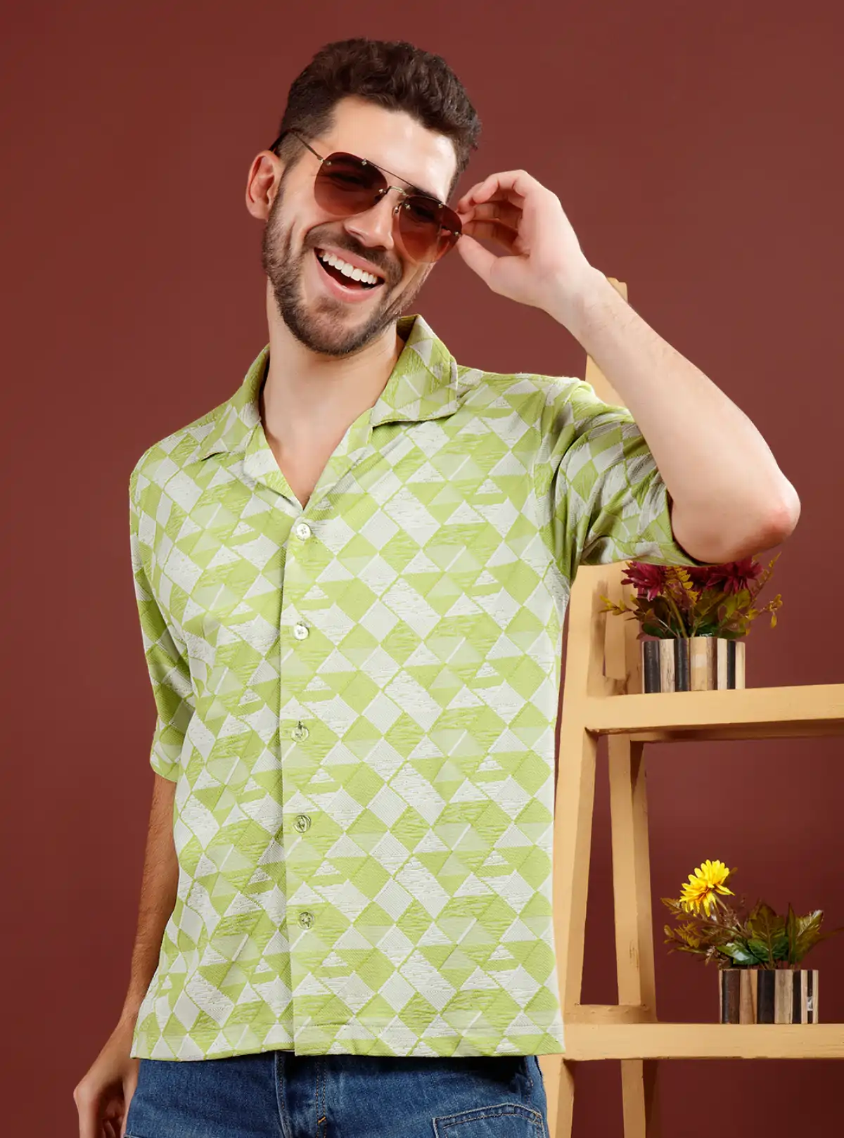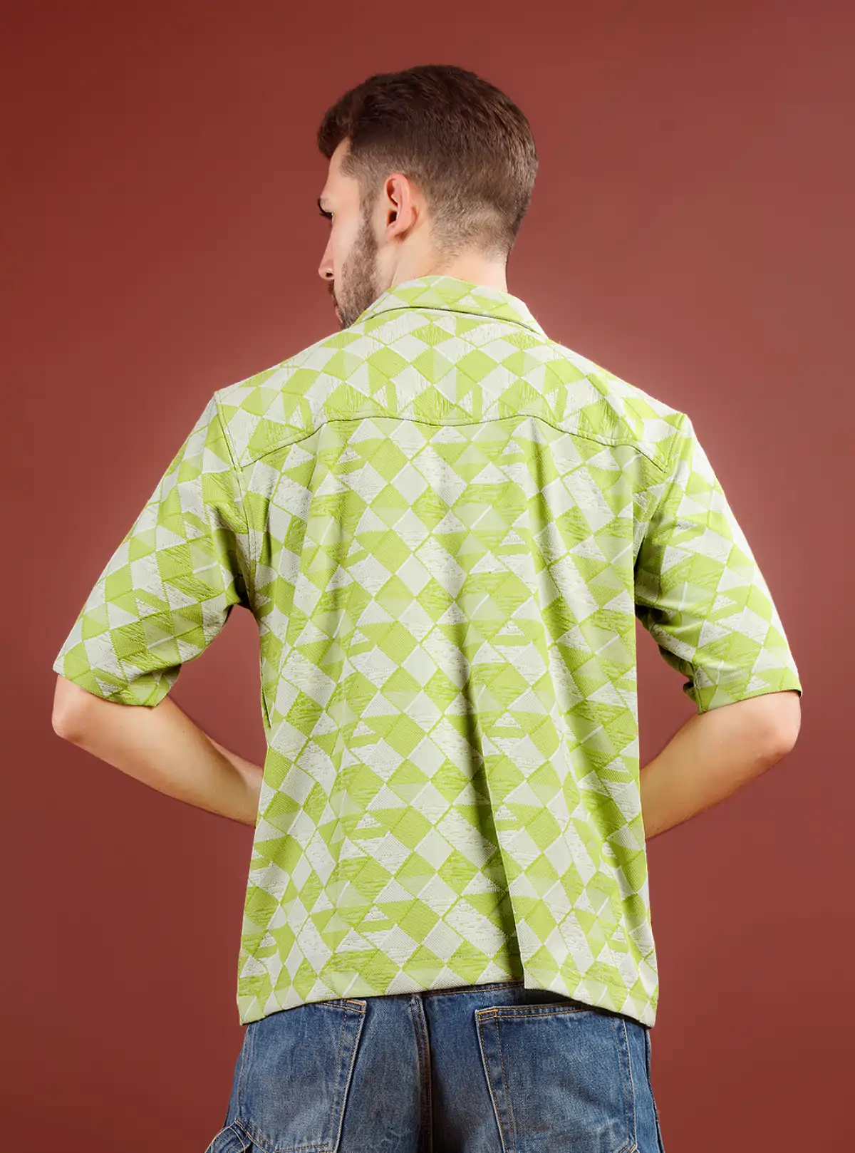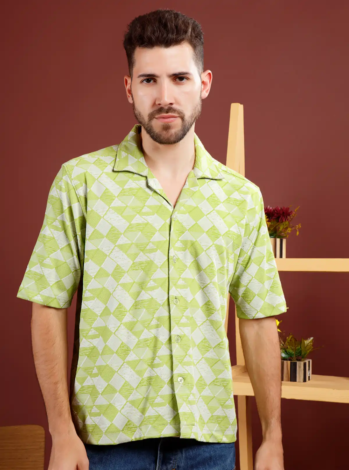 Step out in comfort and style with this relaxed fit premium shirt, crafted from 100% pure cotton knit for an ultra-soft touch and breathability. Its subtle geometric pattern in refreshing green elevates your everyday look while ensuring all-day ease, perfect for casual outings or chill weekends. Designed for those who prioritize both comfort and a distinctive, modern edge.