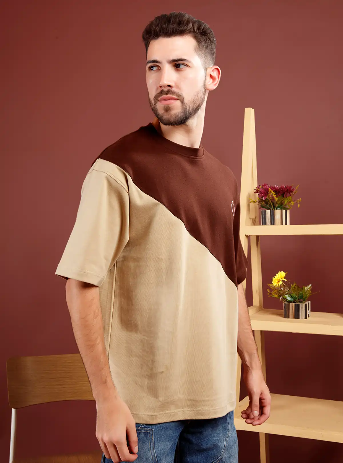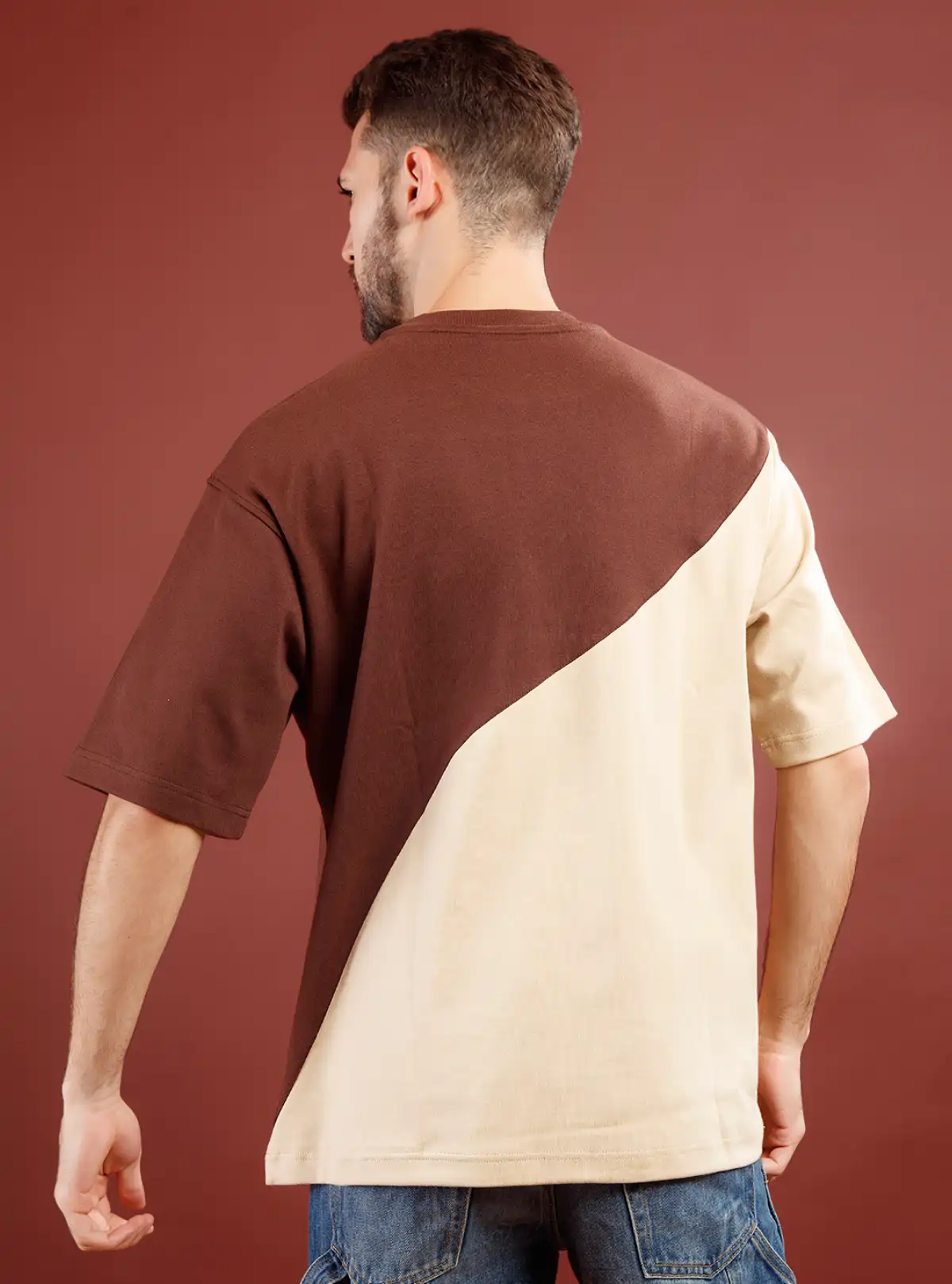 Step up your off-duty look with this oversized fit, color-blocked shirt in coffee and sand shades. Crafted from heavy-weight 100% cotton (250 GSM), it delivers premium feel, comfort, and durability for standout casual style.